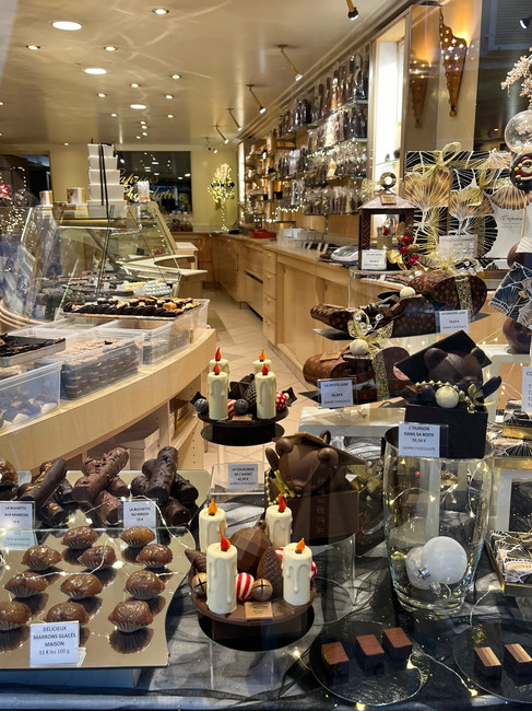 Le chocolat plaît toujours – pour des collègues, des amis, des beaux parents... et chez Caprices ils en font de très beaux créations. Dans la rue des Boulangers, leur vitrine fait beaucoup envie, entre des couronnes de l'Avent ou encore des sapins de Noël abstraits, le tout en chocolat !